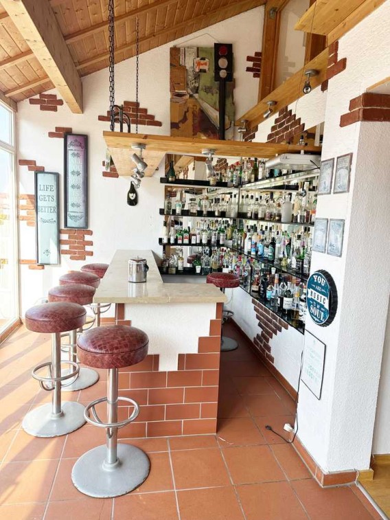 Beispielhaft zu nennen sind der offene und helle Wohnbereich mit Wintergarten (insgesamt ca. 80 m²), das Dachstudio (ca. 50 m²) mit Dachterrasse (ca. 30 m²) und der Wellnessbereich mit Sauna und Schwimmbad (ca. 75 m²). Von außen zwar unscheinbar gehalten, steckt im Innenleben dieses Hauses doch ganz schön viel Musik. Aufgrund des Leerstands sind an der Außenanlage und am Haus diverse Renovierungen durchzuführen, die diese spannende Wohnimmobilie wieder in den verdienten Glanz zurückversetzen werden.