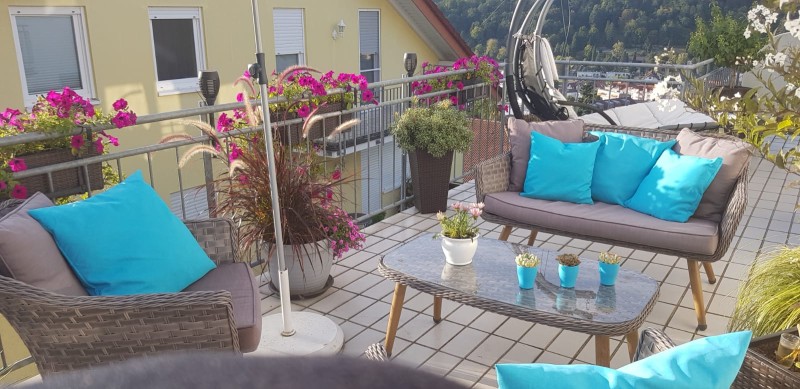 Die Wohnung bietet einen spektakulären Blick über die Stadt Eberbach von 3 großzügigen Dachterrassen.