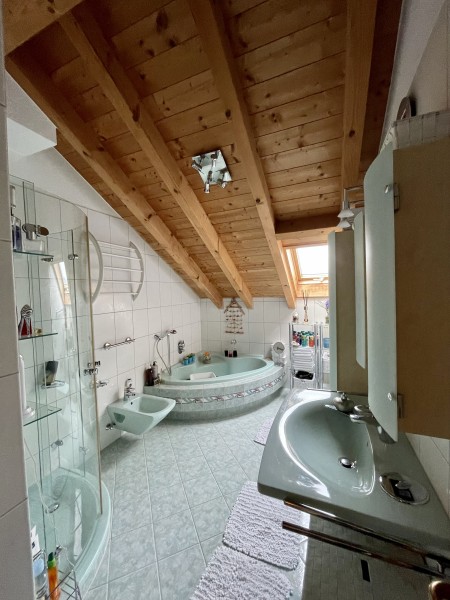 - Badezimmer mit großer Eckbadewanne und separater Dusche