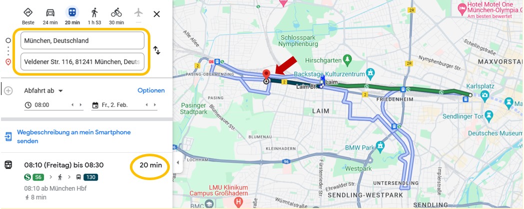 Die Immobilie liegt in einer begehrten Lage zwischen Laim und Pasing in unmittelbarer Nähe zur Landsberger Straße. Dank der U-Bahnlinien U4/U5, des S-Bahnhofs München-Laim, der Straßenbahnlinien 18 und 19 sowie verschiedener Metrobuslinien ist eine hervorragende Anbindung an die Innenstadt sowie das Münchner Umland gegeben.
