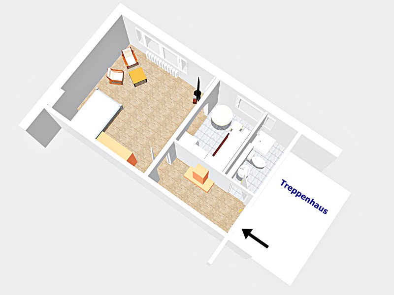 Keine Maklerprovision, Nichtraucherwohnung, 33 qm, komplett möbliert und ausgestattet, Einbauküche mit Mikrowelle, Induktionsherd, Waschmaschine, Kühlschrank und Geschirr. Das Duschbad ist mit Außenfenster, abschließbarer Kellerraum vorhanden. Die Wohnung ist modernisiert, renoviert und zeitgemäß eingerichtet.