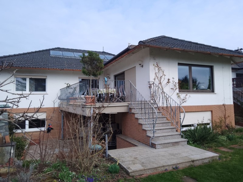 Dieses tolle Haus ist ein Eckha6s auf einer Anhöhe. Es hat eine tolle Terasse oben sowie auch unten mit sehr viel Platz.