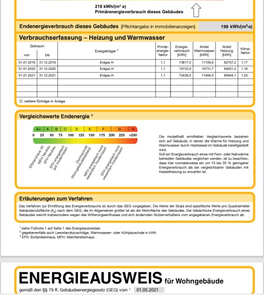 | Endenergiebedarf: | 198,00 kWh/(m²*a) |