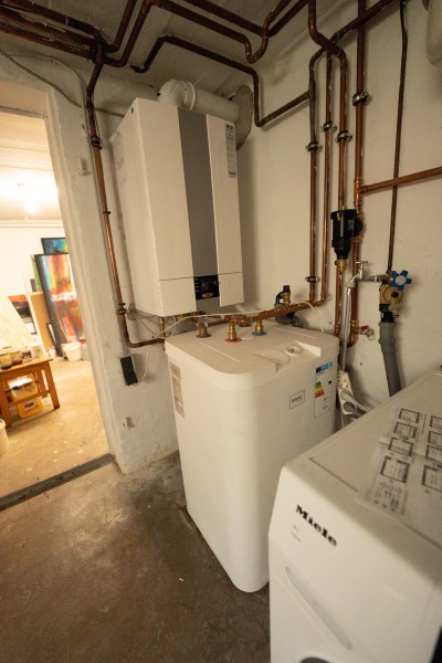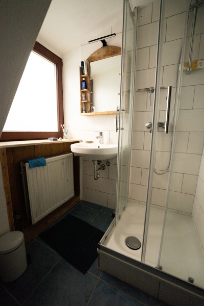 Das Haus ist voll unterkellert und die 3 Kellerräume sind trocken und beheizbar. In einem befindet sich die Ende letzten Jahres eingebaute Gasheizung, im andern das 2. Bad mit Wanne, Dusche und WC.