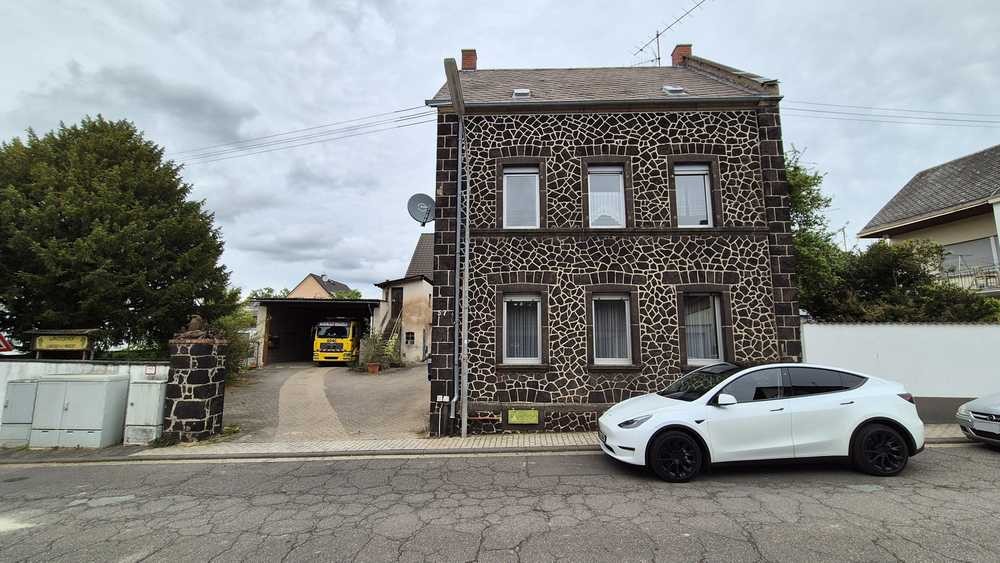 Das Objekt besteht aus einem freistehenden, dreigeschossigen Wohnhaus aus Lavagestein mit Keller und über eine Treppe begehbarem, voll ausbaufähigem Dachboden, einem Anbau mit Bad und Waschküche, einer direkt an den Anbau anschließenden Einzelgarage, einer ebenfalls aus Lavagestein errichteten Scheune mit daran anschließendem Schuppen, einem ehemaligem Stallgebäude und einem erschlossenen Baugrundstück von ca. 560qm.