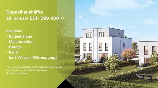 Neubau-Doppelhaus voll unterkellert, zu 100 % schlüsselfertig mit Garage, inkl. Grundstück
