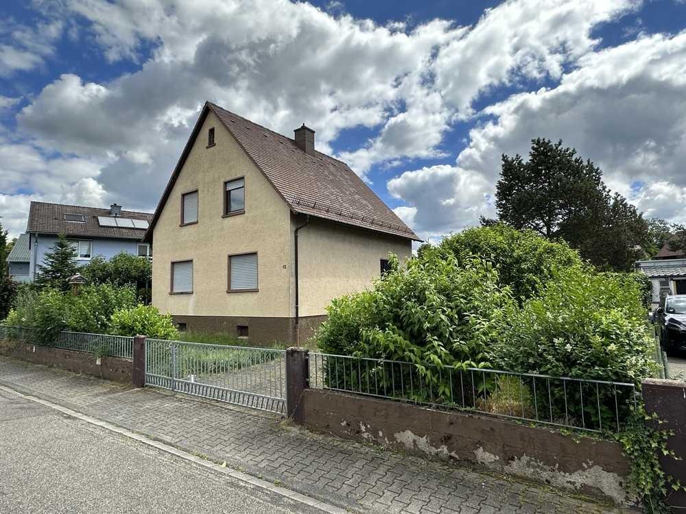 Ruhige Seitenstraße in Rheinstetten-Mörsch. Weit weg von der B36. Kein Durchgangsverkehr. Großes Grundstück mit Grünbestand.