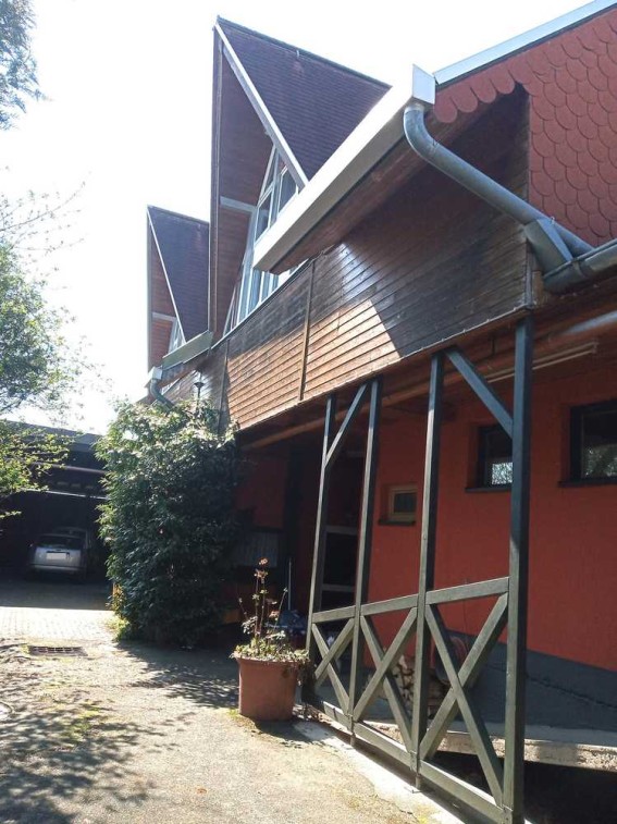 Zwischen 1995 und 1997 entstand, abgegrenzt durch eine Brandschutzmauer, ein nicht unterkellerter Zwischenbau (Wohnhaus mit 4 Gauben). Im Erdgeschoss dieses Gebäudes befindet sich neben zwei Büroräumen, einem Sozialraum, dem Empfangsbereich, einem Badezimmer sowie weiteren sanitären Anlagen noch eine große Garage. Im Obergeschoss und im ausgebauten Dachgeschoss eine traumhaft schöne Wohnung für den Betriebsinhaber mit lichtdurchfluteten Räumen, einer offenen Galerie, einem ebenfalls offenen Wohn-/Essbereich mit angrenzender Küche, zwei Badezimmern und insgesamt drei Schlafzimmern. Durch den gemeinschaftlichen Hauseingang könnte man den Wohnbereich um die v.g. Räumlichkeiten im Erdgeschoss flächenmäßig erweitern.