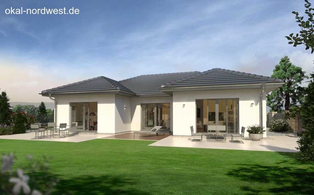 Ein bis ins kleinste Detail durchdachtes Raumwunder ist der Bungalow 2 mit seiner Wohnfläche von knapp 120 qm. Hier finden Familien mit bis zu zwei Kindern Platz und haben zudem noch die Möglichkeit, sich ein eigenes Büro oder alternativ einen Hobbyraum einzurichten. Durch die symmetrische Grundrissgestaltung mit einem Rückversatz entsteht im Außenbereich ein vor Blicken geschützter Bereich, der sich perfekt als Terrasse und damit als Rückzugsort eignet. Der Zugang ist möglich durch den großen und hellen Wohn-Essbereich mit integrierter Küche. Diese ist so konzipiert, dass das Einbinden einer Kochinsel problemlos möglich ist und als idealer Raumteiler zwischen Wohn- und Essbereich fungieren kann. Das Arbeitszimmer ist von hier ebenfalls erreichbar. Über die Diele führt der Weg in die beiden Kinderzimmer, für das ein eigenes Bad mit Dusche und WC zur Verfügung steht. Zum Reich der Eltern gehören neben dem Schlafzimmer ein sich direkt anschließendes Bad sowie Ankleidezimmer. Komplettiert wird das Raumangebot durch einen großen Hauswirtschaftsraum. Auch dieser Bungalow ist in einer Ausführung mit Flach- oder Walmdach erhältlich