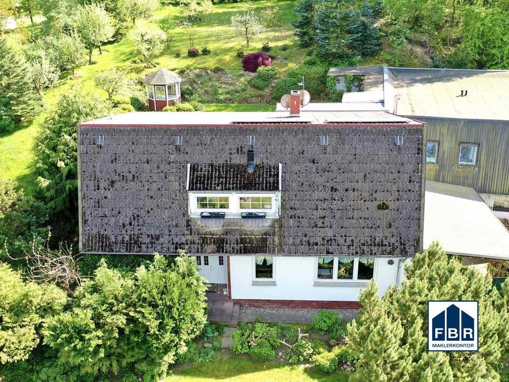 Das Anwesen auf dem ca. 3.471 m² großen, teilweise parkähnlichem Grundstück wird aus einer Einheit von zwei direkt angrenzenden Wohngebäuden massiver Bauweise gebildet. Und zwar einem großzügigen Einfamilienhaus mit einer beachtlichen Wohnfläche von ca. 195 m². Diese ist in fünf Zimmer zuzüglich Wohndiele sowie weiteren Funktions- und Nutzräumen aufgeteilt.