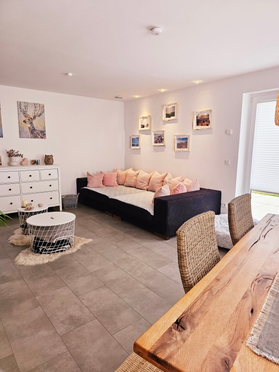 Das Haus wurde 2017 in massiver Bauweise erreichet. Im Erdgeschoss befindet sich der offene Wohn – Essbereich. Die hochwertigen Landhausküche ist im Kaufpreis enthalten.