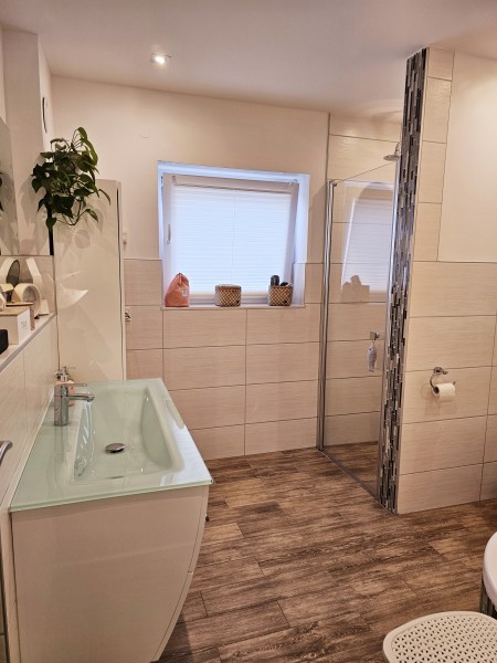 Das Obergeschoss besticht durch ein zusätzliches Bad mit bodenebener Dusche, welches hier für die Kinder genutzt wurde.