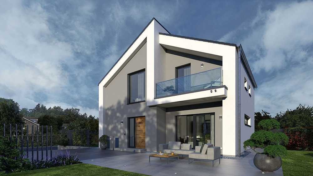 Durch den besonderen Grundriss mit einem eingerückten Bereich entstehen sowohl auf der Vorder- als auch auf der Rückseite zwei windgeschützte Terrassenbereiche.