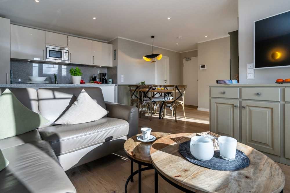 Zum Verkauf steht die Ferienwohnung Nr. 7 mit einer Wohn-Nutzfläche von ca. 79,5 m² im Obergeschoss/SPB. Eine Vermietung an Feriengäste ist zulässig. Über das gepflegte Treppenhaus erreichen Sie das Wohn- Esszimmer mit einer offenen, modernen Einbauküche und einem nach Süden ausgerichtete Loggia. Zusätzlich befindet sich auf der Hauptebene noch ein Duschbad und ein Schlafzimmer. Im ausgebauten Spitzboden befinden sich ein weiterer Raum und ein zusätzliches Bad im modernen Design. Ein weiteres „Highlight“ ist die Sauna im Bad auf der Hauptebene. Zur Wohnung gehört ein Stellplatz auf dem Grundstück.