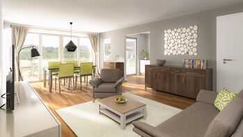 Met ongeveer 78 vierkante meter heeft u dankzij slimme planning voldoende ruimte voor het hele gezin. In de lichte, ruim opgezette kamers woont u op één niveau met de natuur. Of het nu de woonkamer, keuken of slaapkamer is - overal bent u slechts een stap verwijderd van uw tuin.