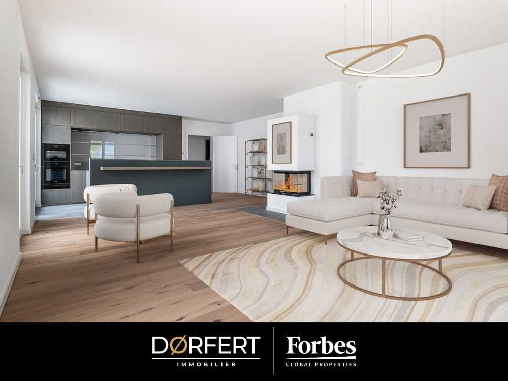 Diese großzügige 4-Zimmer-Wohnung in Hamburg Groß-Flottbek kombiniert stilvolles Design mit modernem Komfort und bietet auf großzügiger Fläche eine luxuriöse Wohnqualität. Der Boden in allen Räumen ist mit hochwertigem Holzparkett versehen, der für eine warme und einladende Atmosphäre sorgt. Im Mittelpunkt steht das beeindruckend große Wohnzimmer mit etwa 53 Quadratmetern. Hier verschmelzen Wohnbereich und Küche harmonisch miteinander, wobei die moderne Einbauküche durch ihre durchdachte Gestaltung und hochwertige Ausstattung überzeugt.