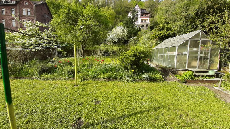 Das Haus liegt in Sankt Goar direkt unterhalb der Burg Rheinfels. Es gibt einen großen sonnigen Garten mit einer herrlichen Terrasse. Dort ist viel Platz für Obst, Gemüse, für Entspannung und zum Spielen.