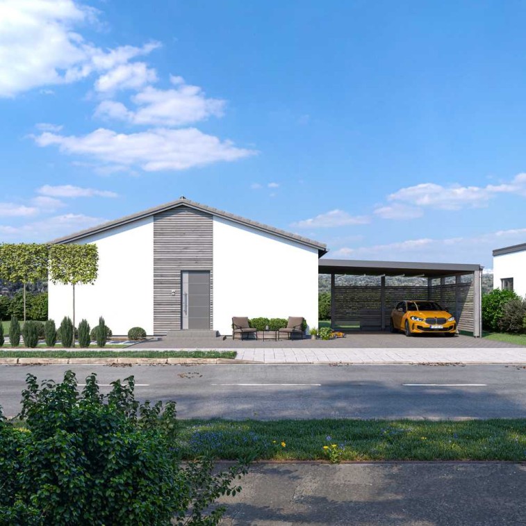 Dieser knapp 104 m² Bungalow mit offenem Koch-, Wohn- und Essbereich bietet modernen Wohnkomfort in ökologischer Bauweise. Die großzügig geschnittenen Räume sind lichtdurchflutet.