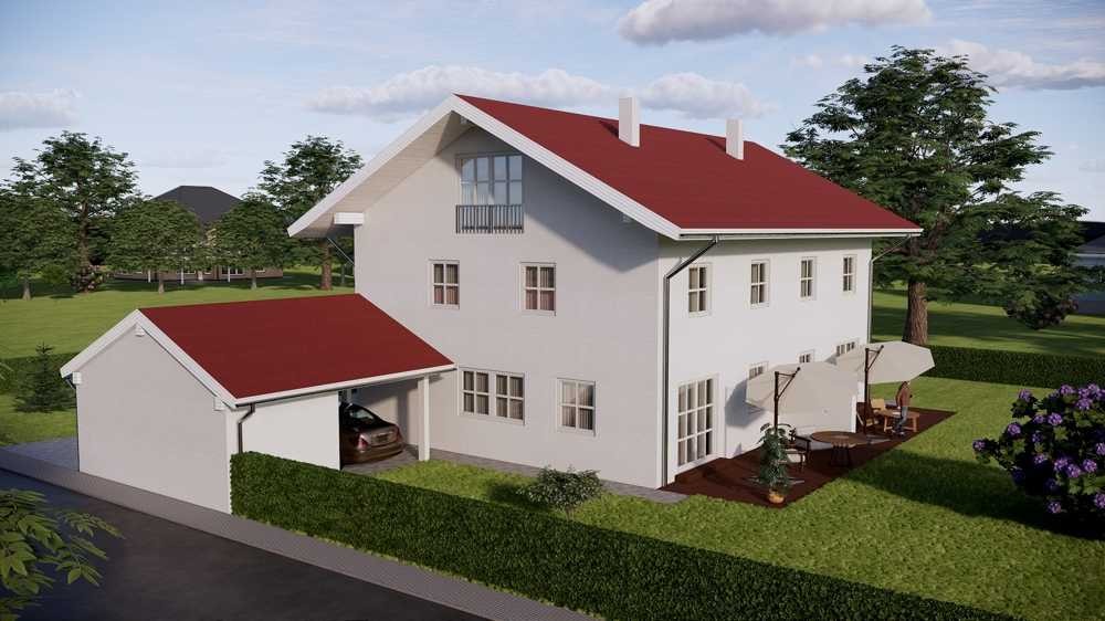 Zur Doppelhaushälfte gehört eine Einzelgarage inkl. Sektionaltor sowie ein Carport. Die Anschlüsse für eine E-Autoladestation werden natürlich vorbereitet.