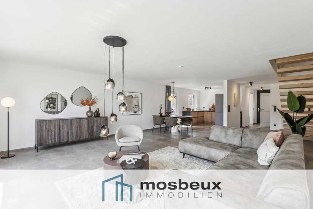 Hochwertiges Wohnerlebnis in energieeffizientem Neubau - die kürzlich fertiggestellte Doppelhaushälfte befindet sich in einem beliebten Neubaugebiet. Das Haus - welches sich auf einem pflegeleichtem Grundstück befindet - präsentiert sich in einer stilvollen Ausstattung ausgewählter Materialien. Das Haus erstreckt sich über ein Vollgeschoss und ein ausgebautes Dachgeschoss, sowie über einen Dachboden. Das Highlight der Immobilie ist der einladende Küchen- Ess- und Wohnbereich mit direktem Blickfang und Zugang zum süd-östlich ausgerichteten Terrassen- und Gartenbereich. Die Grundrissgestaltung eignet sich sowohl für einen 2-Personen-Haushalt, als auch für eine Familie. Bezüglich der Materialien und der Ausstattung, sind die folgenden Details zu erwähnen: