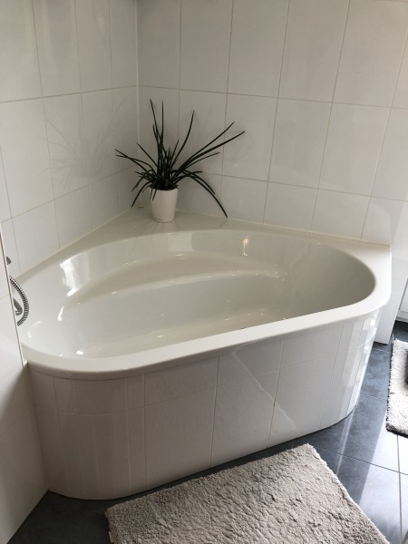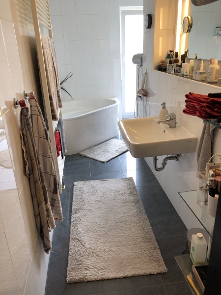 - im Erdgeschoß befindet sich ein großes modernes Bad mit Bidet, Wanne und Dusche