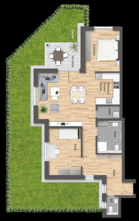 Zu dem Objekt zählen neben drei einladenden Zimmern nicht nur ein Badezimmer, sondern auch ein separates Gäste-WC und ein Hauswirtschaftsraum mit Waschmaschinenanschluss. Die Wohnung befindet sich in einem 2024 erbauten Haus und wird per Fernwärme beheizt. Besonders hervorzuheben ist, dass es nicht nur eine Terrasse gibt, sondern auch ein eigenen Garten.