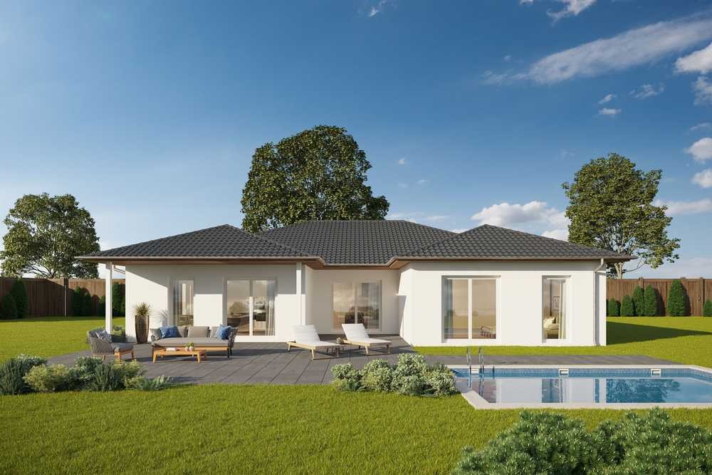 Dieser Bungalow ist das Raumwunder unter unseren Häusern. Ein "Muss" für Individualisten und alle Bauherren, die eine wahrhafte Abwechslung suchen.