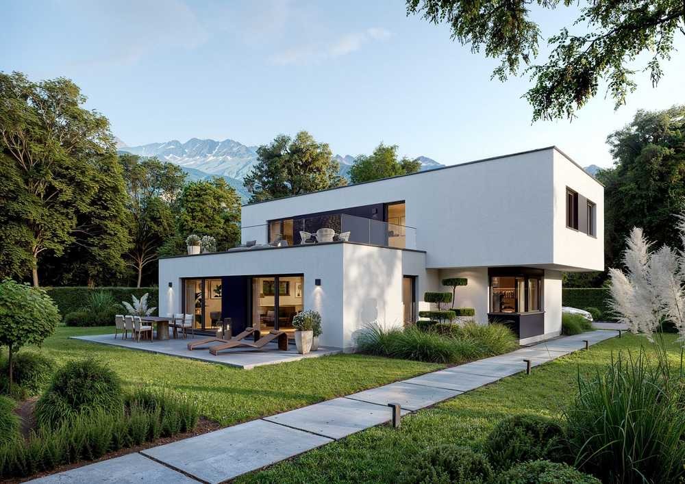 Beim Haus handelt es sich um einen Bebauungsvorschlag. Der Preis beinhaltet das abgebildete Haus inklusive Grundstück und Keller ohne Baunebenkosten. Grundrissänderungen oder individuelle Planung ist jeder Zeit möglich.
