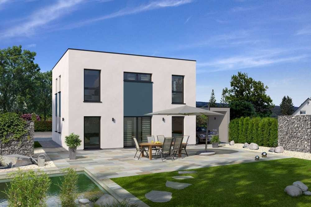 Die Architektur des Hauses ist im klassischen Bauhausstil gehalten. Der Grundriss ist klug durchdacht. Im Erdgeschoss befinden sich ein offen gestalteter Wohn-/Ess- und Kochbereich mit einem praktischen Haustechnik-/Hauswirtschaftsraum, direkt neben der Küche. Ein Zusatzraum, der als Homeoffice, Gäste-, Schlaf- oder Hobbyraum genutzt werden kann, bietet zusätzlichen Komfort. Die Diele mit dem Treppenhaus ist mittig angeordnet. Neben dem Eingangsbereich ist eine Garderobennische und ein Gäste-/WC eingeplant. Das Gäste-
