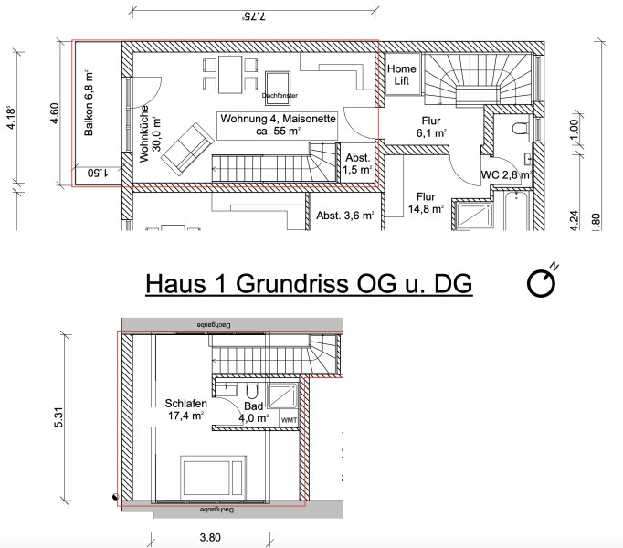 55 qm Wohnfläche, Energie A+, Neubau 2023, HomeLift