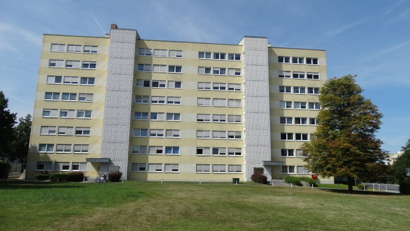 Die Wohnung befindet sich im 2. Obergeschoss eines 8-geschossigen Mehrfamilienhauses im zentralen Stadtbereich in der Wieland-Wagner-Straße in Bayreuth.