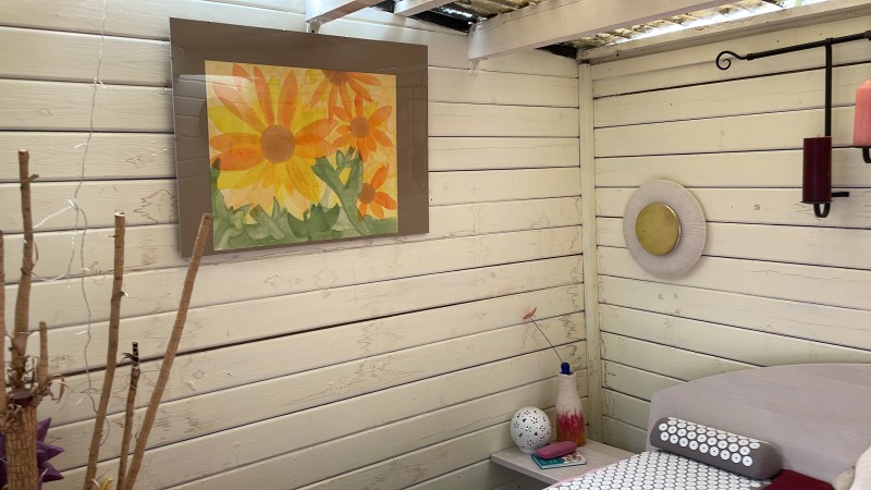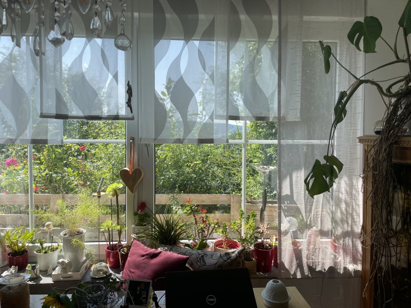 Im Garten befinden sich Hochbeete und Obstbäume zur Selbstversorgung.