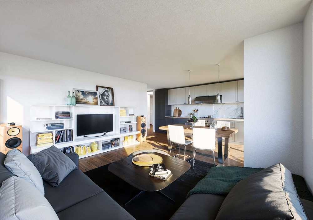 Wohnungen eignen sich mit großzügigen und offen gestalteten Wohn-Ess-Küchenbereichen sowie zwei weiteren Zimmern auch optimal für
