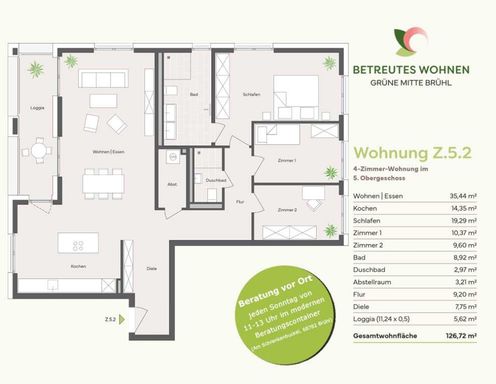 Seniorengerechte Ausstattungsdetails erleichtern das Leben nachhaltig. Die überdachte und wettergeschützte Loggia erhöht zusätzlich die Wohnqualität.