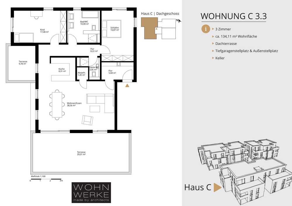 Whg C 3.3. - 3 Zimmer - Dachgeschoss mit 2 Dachterrassen
