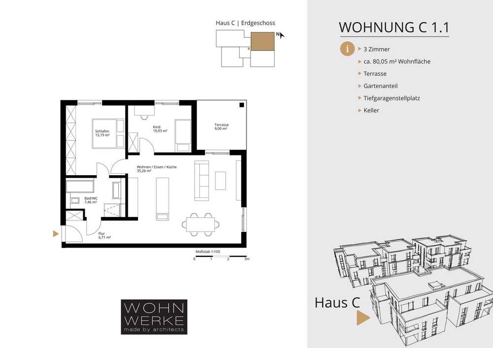 Whg C 1.1. - 3 Zimmer - Erdgeschoss mit ca. 71 m² Gartenanteil