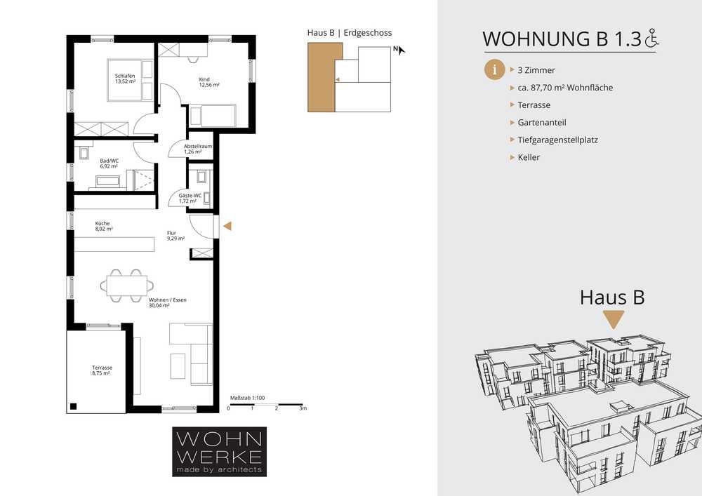 Whg B 1.3. - 3 Zimmer - Erdgeschoss mit ca. 156 m² Gartenanteil - barrierefrei