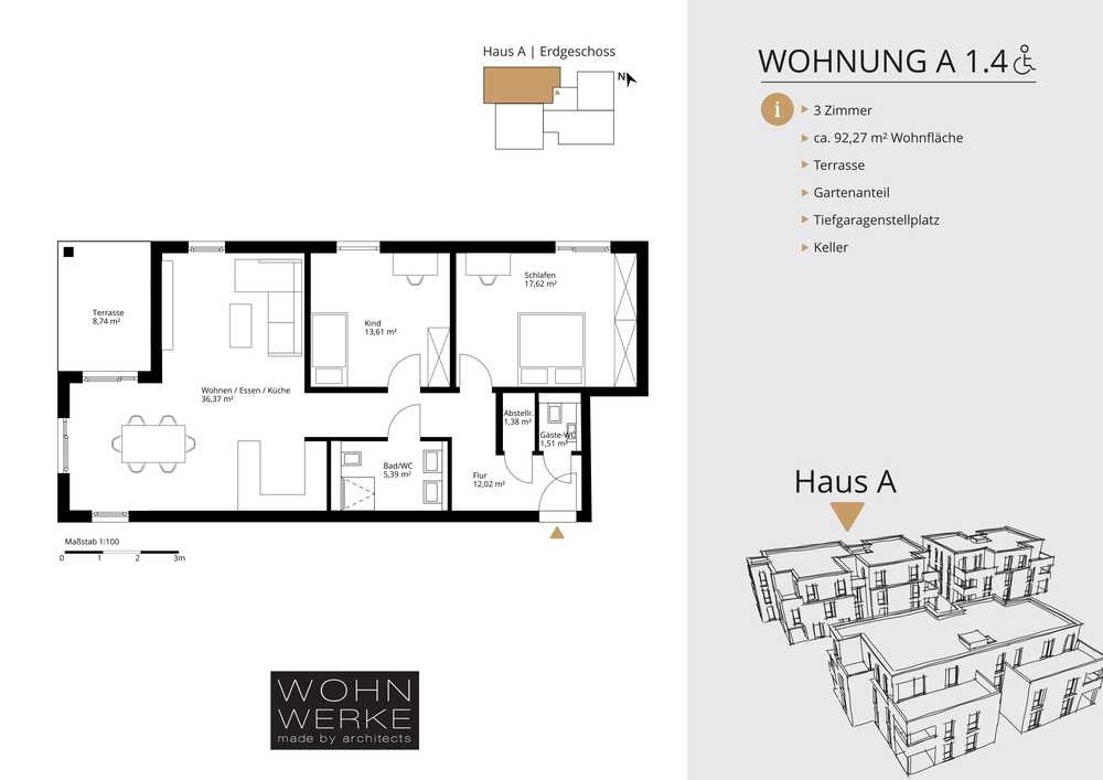 Whg A 1.4. - 3 Zimmer - Erdgeschoss mit ca. 67 m² Gartenanteil - barrierefrei