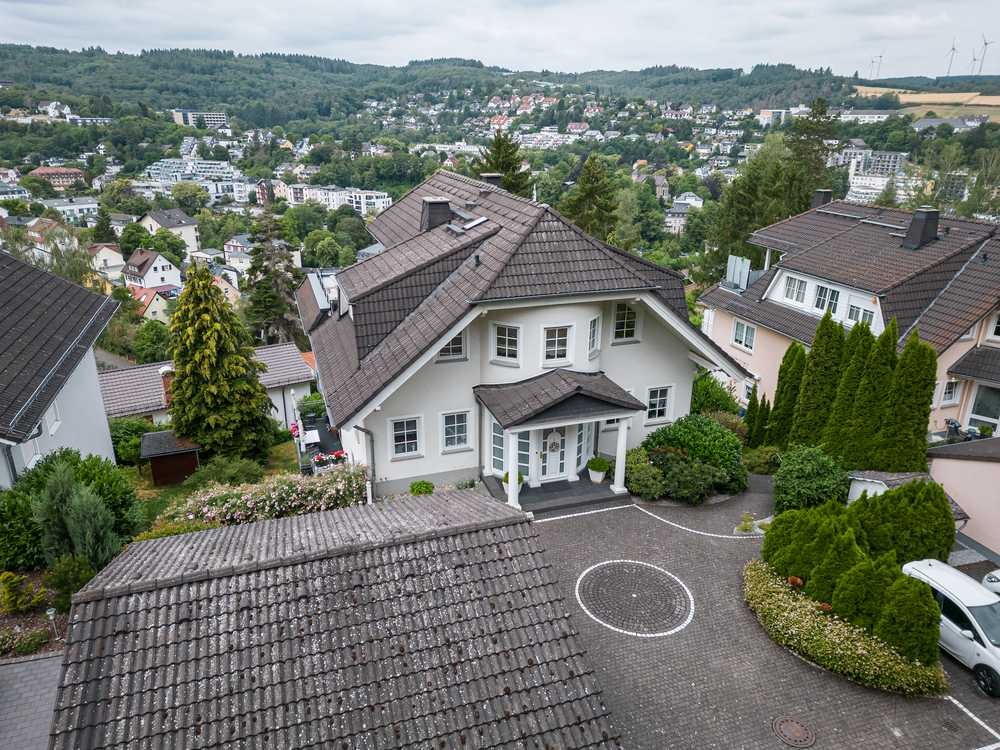 Über eine Sackgasse gelangen Sie auf den geräumigen Hof mit einer Doppelgarage und zwei zusätzlichen Parkplätzen. Ein frisch renoviertes Außenkleid (Fassade, Gauben und Dach) unterstreicht die Hochwertige und sehr gepflegte Substanz des Anwesens (Bilder noch vor Renovierung). Abgetrennte Wohnungen mit separaten Eingängen ermöglichen ein abgegrenztes Miteinander. Die Hauptwohnung im Erdgeschoss und ersten Obergeschoss überzeugt mit einem großzügigen Eingangsbereich und einer offenen lichtdurchfluteten Gestaltung.