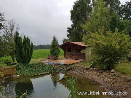 Gewächshaus, Blockbohlenhaus, Teich usw.