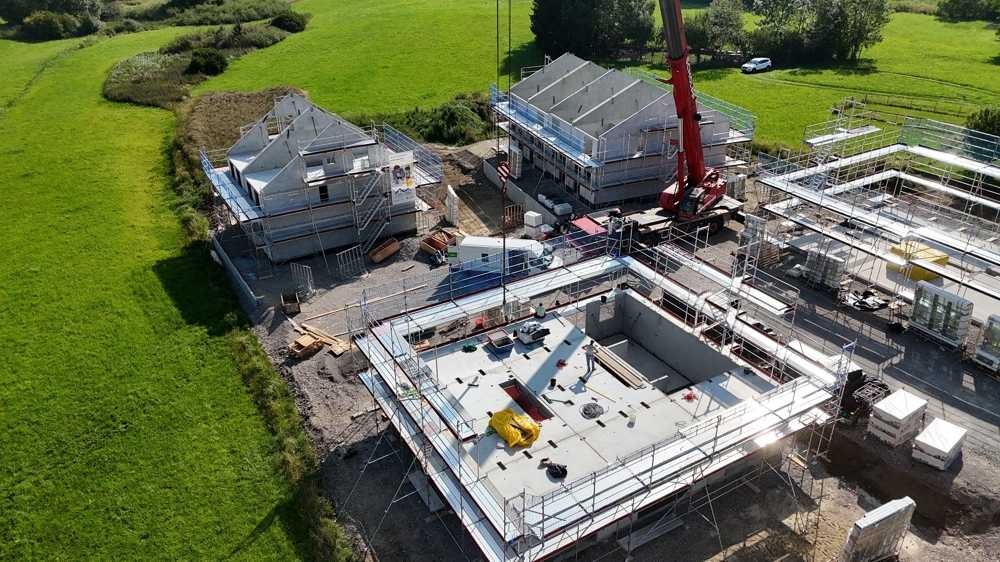 Unser Ansatz: Serielles Bauen mit hoher Qualität, Effizienz und Fokus auf Nachhaltigkeit. So schaffen wir in kurzer Zeit modernen Wohnraum mit hohem energetischen Standard.