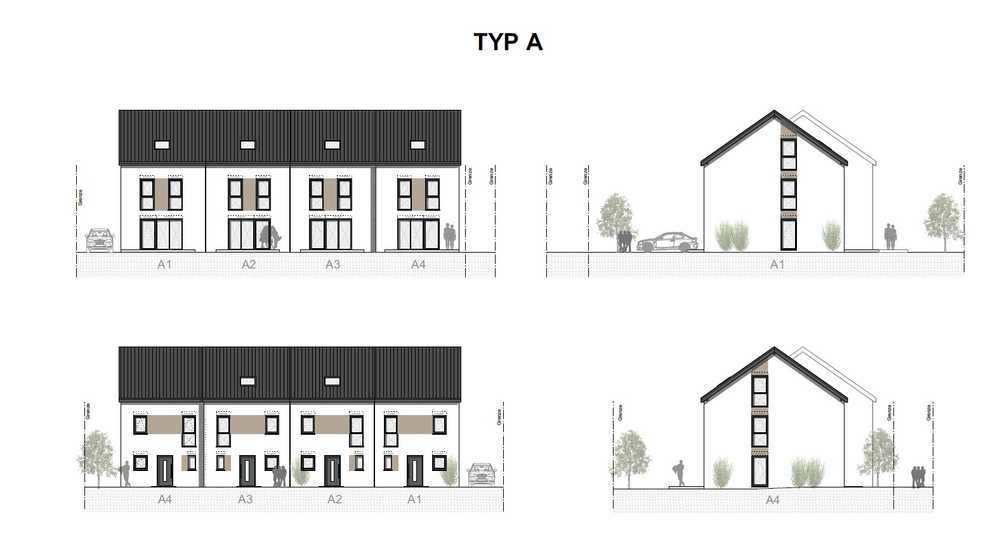 Der Haustyp A2 bietet eine Wohn-/Nutzfläche von ca. 130 m² und einer Grundstücksgröße von ca. 156 m².