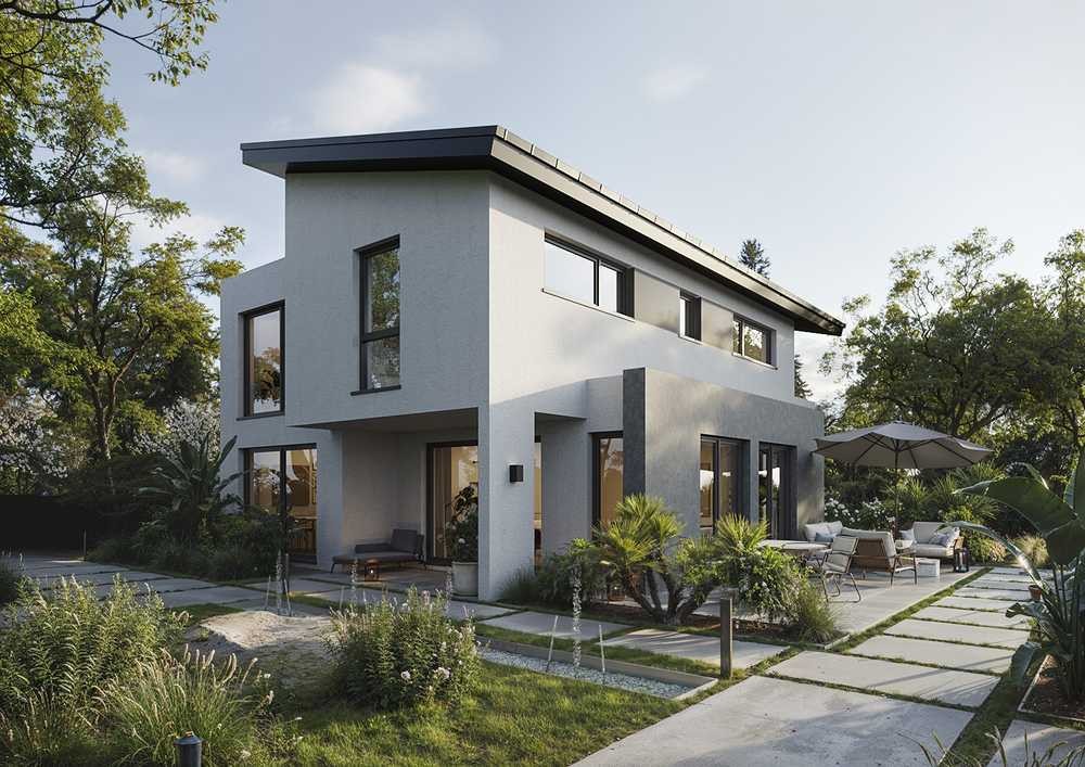 Beim Haus handelt es sich um einen Bebauungsvorschlag. Der Preis beinhaltet das abgebildete Haus inklusive Grundstück und Keller ohne Baunebenkosten. Grundrissänderungen oder individuelle Planung ist jeder Zeit möglich.