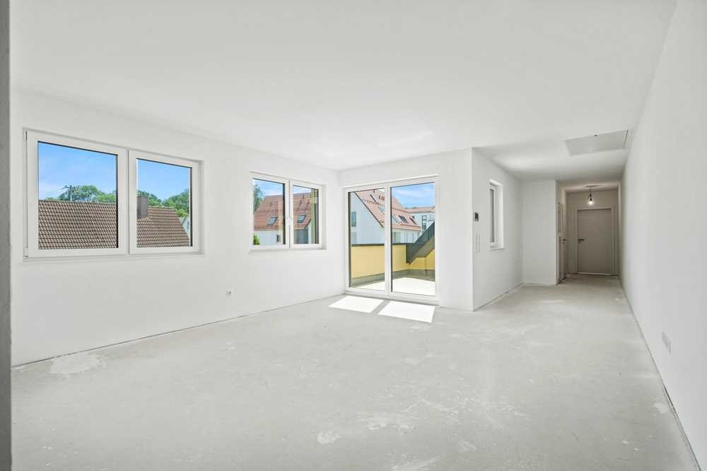 Diese moderne 3,5-Zimmer-Dachgeschosswohnung mit ca. 76 m² Wohnfläche überzeugt als Erstbezug – energieeffizient nach KfW-55-Standard und damit nachhaltig sowie besonders kostensparend. Der offene, lichtdurchflutete Wohn- und Essbereich bildet das Herzstück der Wohnung und bietet viel Platz für entspannte Stunden, gesellige Abende oder gemütliches Zusammensein mit Familie und Freunden. Ein Schlafzimmer und ein kleineres Zimmer, ideal nutzbar als Büro, Kinder- oder Gästezimmer, runden die praktische Raumaufteilung perfekt ab. Vom Wohnbereich aus gelangen Sie direkt auf den sonnigen Balkon – ein wunderbarer Ort, um frische Luft zu genießen, den Tag ausklingen zu lassen oder den Blick über die Umgebung schweifen zu lassen. Das Badezimmer verfügt über Tageslicht und eine Badewanne, sodass hier Erholung und Komfort Hand in Hand gehen. Die solide Massivbauweise garantiert Langlebigkeit und hohe Qualität. Die zentrale Lage in Achstetten sorgt für kurze Wege zu Einkaufsmöglichkeiten, Schulen, Kindergärten und Freizeitangeboten und macht die Wohnung sowohl für Paare als auch für Kapitalanleger attraktiv. Optional kann ein Tiefgaragenstellplatz, Carport oder Außenstellplatz erworben werden. Dieses Erstbezug-Objekt vereint modernes, komfortables Wohnen, stilvolle Gestaltung und durchdachte Funktionalität auf ideale Weise.