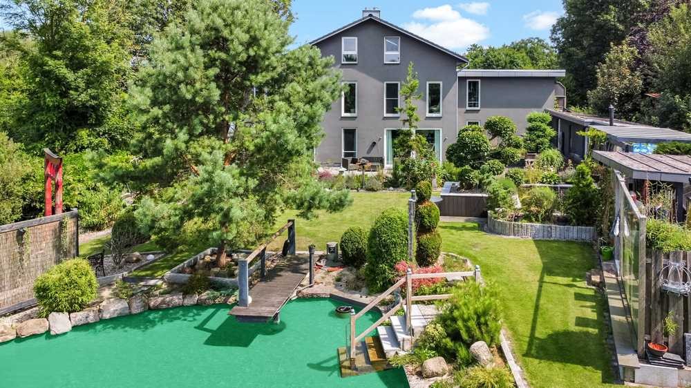 Herzlich Willkommen in Aukrug, im idyllischen Ortsteil Böken. Diese außergewöhnliche Immobilie ist ein wahres Traumobjekt in Großformat und lässt keine Wünsche offen. Das wunderschön gestaltete, sehr gepflegte Grundstück besticht durch seine durchdachte Anordnung und seine einzigartige Idylle. Ein großzügiger Schwimmteich fügt sich harmonisch in die Gartenlandschaft ein, die mit direktem Zugang zur Höllenau und charmanten Sitzmöglichkeiten am Wasser zum Verweilen einlädt. Der hochwertige Innenbereich bietet unzählige Nutzungsmöglichkeiten und erfüllt höchste Ansprüche. Das Objekt ist ideal für anspruchsvolle Familien oder Paare, die naturnah leben und zugleich ein exklusives Zuhause suchen.