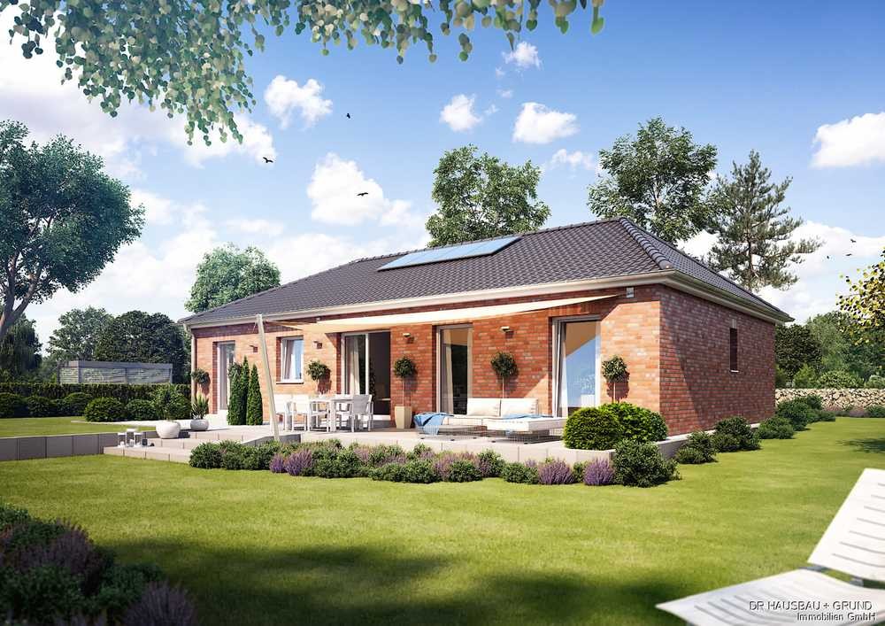 Sie haben genügend Standard-Grundrisse gesehen? Wenn Sie moderne Raumkonzepte mögen, werden Sie dieses Haus lieben! Freuen Sie sich darüber hinaus auf ebenerdiges, barrierearmes Wohnen ohne Treppe. Dieser Bungalow mit mehr als 125 m² ist sowohl für kleine Familien als auch Best Ager geeignet. Alle unsere Massivhäuser werden ausschließlich mit hochwertigen Markenprodukten gebaut. Wir betreuen Sie individuell und vor Ort. Heinz von Heiden ist Ihr ganz persönlicher Traumhauspartner. Die Abbildung zeigt eine Ausstattungsvariante.