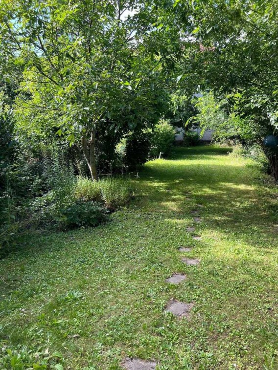 große, uneinsehbare Gartenidylle mit massiven Gartenhaus.