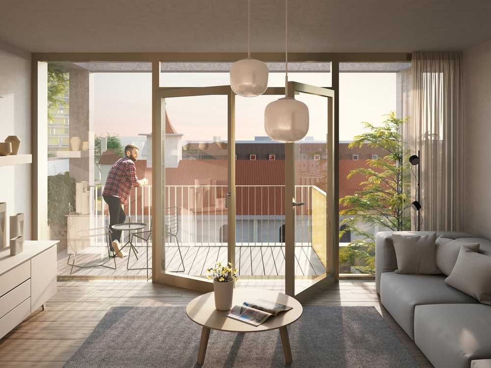 3 Zimmerwohnung in einem Holzhybridhaus in der New Franklin City. Einem smart und nachhaltig geplanten Stadtteil.