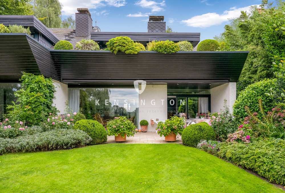 Der großzügige Garten auf dem ca. 2.331 m² großen Grundstück und die weitläufige Sonnenterrasse mit Außenkamin bieten das ganze Jahr über ausreichend Platz für die ganze Familie.