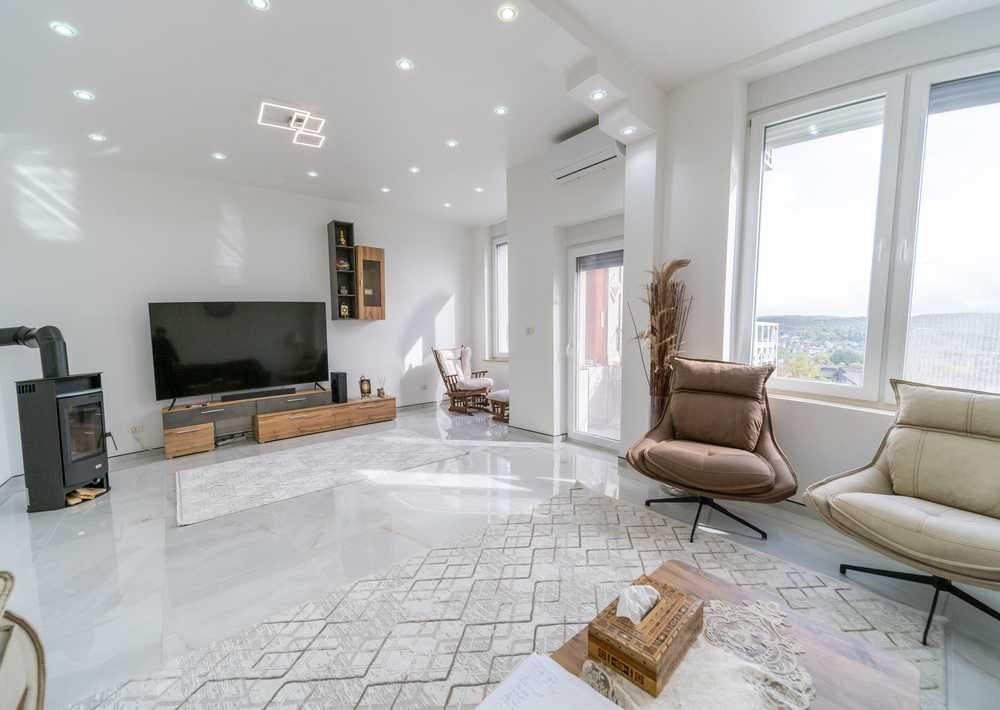 Besonders erwähnenswert ist die Ausstattung der Wohnung. Hochwertiger Marmorboden, sechs Klimaanlagen, die im Sommer für angenehme Kühlung und im Winter für eine effiziente Beheizung sorgen. Zusätzlich sorgt ein im Jahr 2024 installierter Ofen für ein weiteres angenehmes Raumklima.